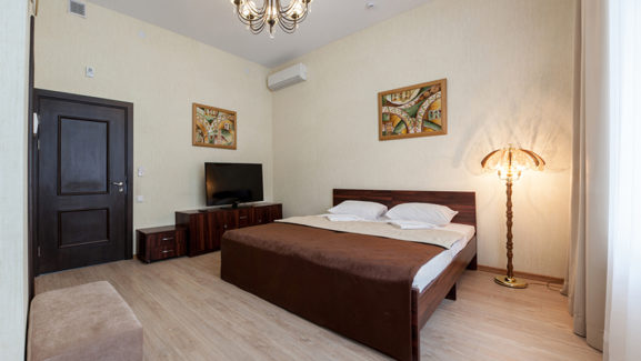 Кондиционер, Отопление, Шкаф/гардероб, Душ, Фен, Туалетные принадлежности, Душевая кабина, Биде, Телефон, Кабельное TV, Холодильник, Электрический чайник, Кухонные принадлежности, Полотенца, Постельное белье